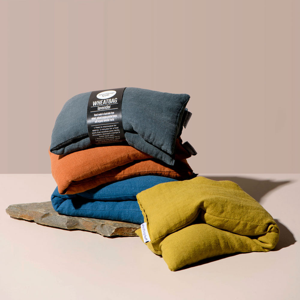 Our superstar Operations Manager, Leanne, is a friendly and familiar point of contact for all of our stockists and regular customers. A wonderful team of women work out of a studio in Melbourne, where everything is made by hand using all-natural and organic materials. Our wheatbags and eye pillows can be made even more special with the addition of lavender and clove scents. For the ultimate pampering gift, combine our wheatbags and eye pillows with other self-care items, such as bath oil, bath salts, muscle or sleep balm, in one of our gift boxes.